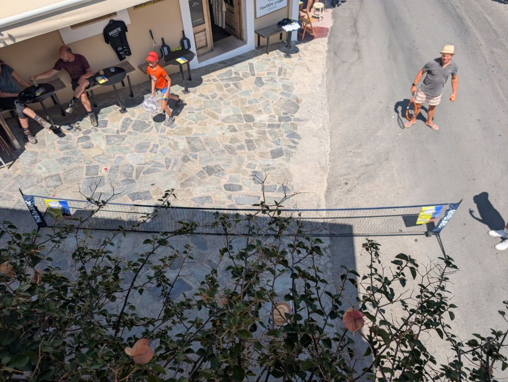 Sunday in the village is different than the other days. It starts with church bells ringing at 7am, and then again at 8 (for someone with jet lag and who was unaware it was coming, it was VERY shocking to the system. I now know to wear earplugs before bed Saturday night). Where at first I thought the view of the church from my bedroom was quaint, I now think a little differently about being so close to the bells. 🫨 After church, everyone gathers in the village, or more accurately, right below my balcony. Women who played professionally brought in a net to practice pickle ball and tennis (working on their short game, obviously), and they let all the tourists and children have turns and even coached a bit. I sat out with a book and some tea and was able to participate from afar. What a great time for people watching!